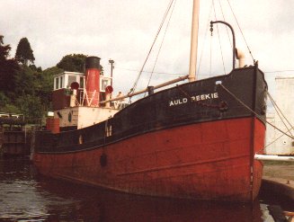 The last steam powered "Puffer" seen at one end of the Crinan Canal. This boat was later re-painted and used as the "Vital Spark" in the 1990's BBC TV series. The hold has been converted to provide sleeping accommodation.